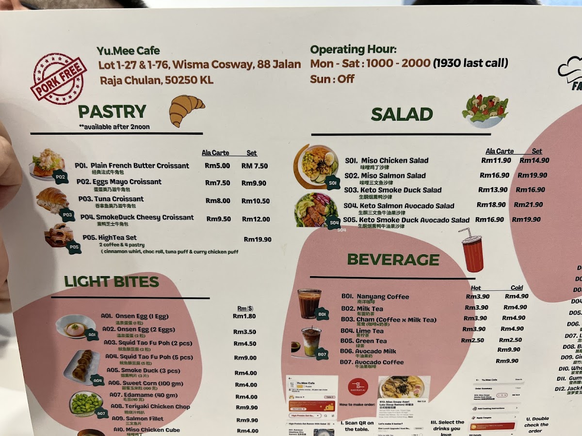 Located in the bustling Wisma Cosway, Yu.Mee Cafe offers a delightful escape with its simple yet flavorful Japanese-inspired menu. This quaint eatery boasts an array of health-conscious options, featuring dishes like the recommended scallion noodle 葱油拌面 that impresses with its perfect texture and tangy flavor.
